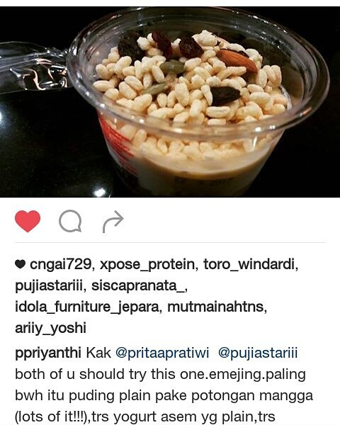 Repost from @ppriyanthi kak pritaapratiwi pujiastariii Both of you should try this one. emejing. Paling bwh itu puding plain pake potongan mangga (lots of it!!!!), trs yogurt asem yg plain